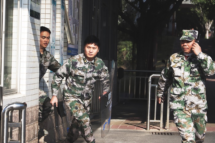 本网讯(校报记者 陈怡颖/黄欣怡/刘学宝/吴自献/林土坤)为了增强安保人员反恐防暴安全意识,确保师生生命安全,做好校园安全保卫工作,建设安全校园。12月31日下午,伟德官网于学校正门开展反恐应急演练。本次演练由伟德官网保卫处干事、校警协同肇庆市公安局高要分局莲塘派出所开展,保卫处处长曾荫初进行现场指导。