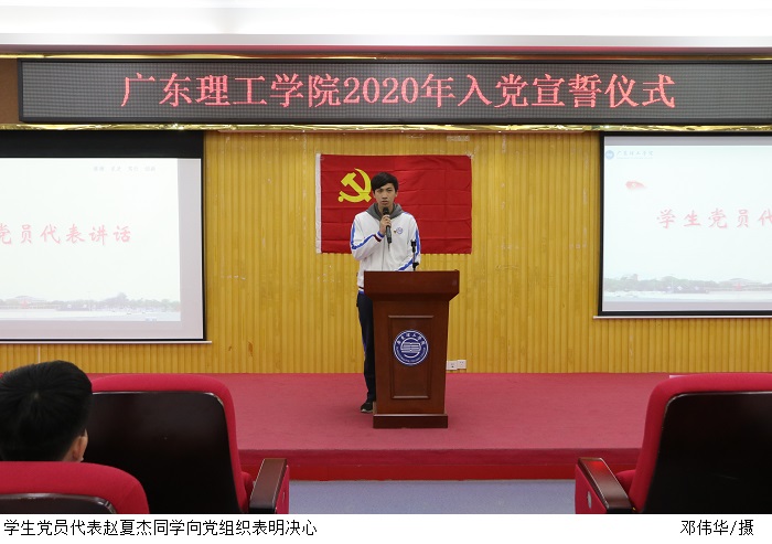 新发展党员代表、会计学院18级财管4班赵夏杰同学也向党组织表明决心。赵同学对自己以及在座人员提出要求,一是要以先进的理论武装头脑,虚心学习,认真实践;二是将以更加严格的标准规范自己,以更高的要求鞭策自己,发挥共产党员的先锋模范作用,配合党组织开展思想引领工作;三是将以入党为新起点,以自身为工作切入点,将党的先进思想理论融入到日常的学习工作中。