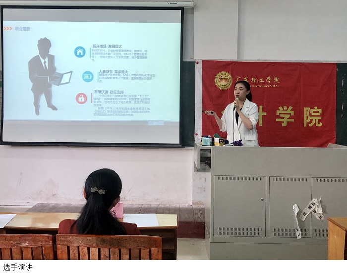 党总支黎伯毅书记指出,全体学生应当合理定位人生,清晰发展目标,将近期目标和长远目标结合起来,做到不忘初心,勇往直前。随后,15名选手依次上台演讲,从自我认知、职业环境分析、职业目标确定、评估与调整等方面阐述了自己的职业规划,充分展现了当代学子朝气蓬勃的精神风貌和锐意进取的形象。在演讲结束后,评委老师就其展示中出现的疑问和规划中出现一些模糊不清的计划对选手进行提问,并根据具体情况相应地给予一些中肯的意见,希望大家能够认真思考自己以后的规划路线。最后,进行演讲分数评比,最终有7名选手晋级决赛,分别是:19级本科财务管理2班刘洁仪、19级本科财务管理5班陈俏婷、19级本科会计学10班房泰森、19级本科会计学13班贺苑玲、19级本科会计学4班陈文婷、20级本科财务管理2班罗奥升、20级本科会计学11班弓婕莹。