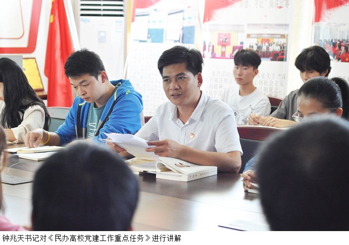 钟兆天书记对《民办高校党建工作重点任务》进行讲解,并提到要严明党的政治纪律和政治规矩,涵养良好的校园政治生态并且聚焦重点难点,抓好思想政治教育和德育工作,以及做好党员教育管理工作。汽车工程系詹小慧老师学习后并发表讲话,在建设任务过程中,党员教师要结合实际,切记不能忽略掉周围客观因素。抓好党员队伍建设,必须要正视群众的需要,积极主动地去发现问题,用行动去解决问题。汽车工程系朱枝伟老师提到,在落实《民办高校党建工作重点任务》时要坚持学习。在日常工作和学习过程中,要完成好党的任务,积极响应号召。同时在这次会议中了解到,要抓住要点,积极推动党的组织、党的工作有效覆盖。