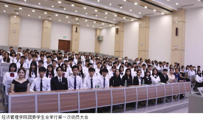 本网讯(经济管理学院)为贯彻全国学联二十七大精神,进一步落实青联学联改革再出发的实践方针、提升各部门干部及干事的积极性,11月9日晚,第六届经济管理学院团委学生会动员大会在六栋阶梯教室举行。学生党支部赵雪娇书记、团委学生会赵丹丹书记、团委学生会杨洋晨子副书记、辅导员张娜娜、团委干部及干事全员参加本次大会。