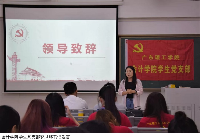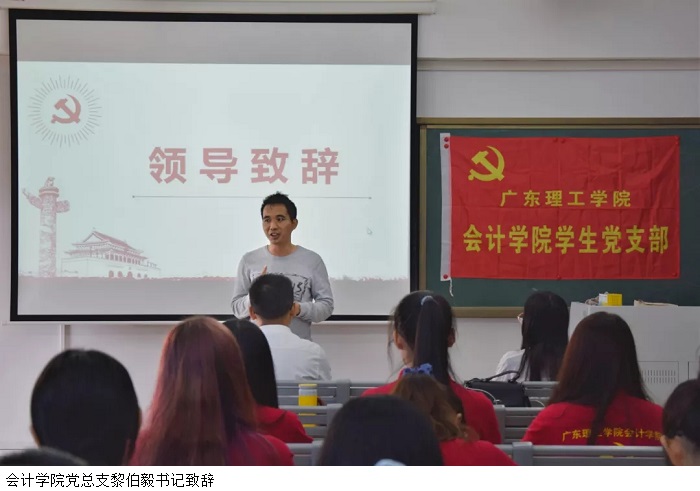 本网讯(会计学院)为了能更好地增强组织凝聚力,切实加强新学期学院党支部相关工作的有序进行。10月27日下午,会计学院学生党支部先锋队动员大会在鼎湖校区7407课室顺利举行。会计学院党总支黎伯毅书记、党总支徐永明副书记、学生党支部郭凤玮书记、考证负责人罗广超老师、易班负责老师刘娟老师、18级负责人陈恩倩、18级部分干部、19级全体干部以及20级全体新干事出席会议。