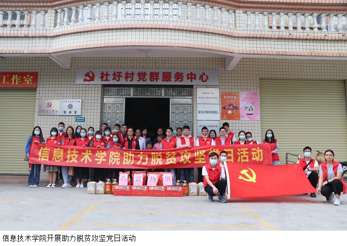 本网讯(信息技术学院 黄欣妍)为贯彻落实党中央关于助力决战脱贫攻坚、决胜全面小康的号召。10月31日,信息技术学院党总支赴云浮市新兴县太平镇社圩村开展助力脱贫攻坚党日活动。信息学院全体教职工党员参加此次活动。