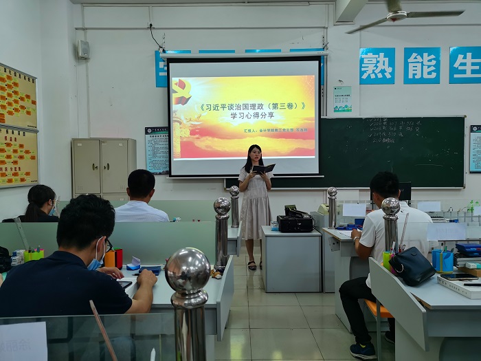 本网讯(会计学院 新闻中心) 9月8日下午,会计学院党总支在7栋112举行了《习近平谈治国理政》第三卷学习暨党员转正会议。党总支黎伯毅书记主持会发表重要讲话。