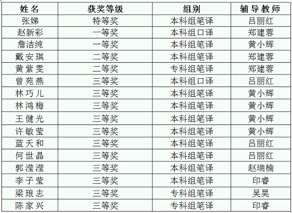 本次比赛充分调动了广大翻译爱好者的积极性,也较好地体现了我院以赛促学、以赛促教的教学成果,我院在本次比赛中获得最佳组织奖,以上辅导老师获得优秀指导老师奖。
