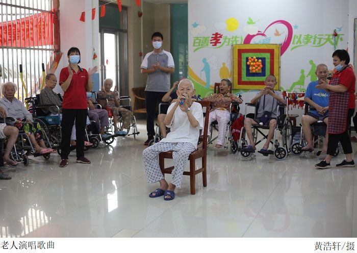 早上八点,全体成员在校门口集合并乘车前往众德养老院。在活动现场,志愿者开始精彩的歌舞表演,梁星全现场演唱歌曲并为老人们送上诚挚的祝福,随后老人们演唱了《中国人民志愿军战歌》和《我是一个兵》。表演结束后,志愿者在梁星全的带领下为老人们送上了毛巾、水果等慰问品。