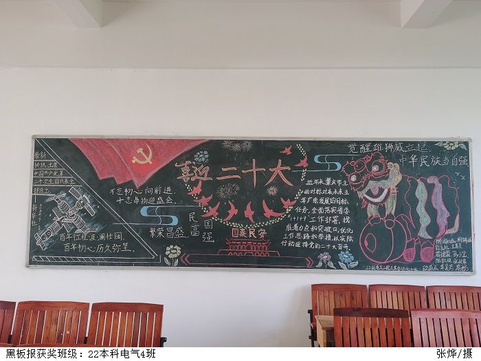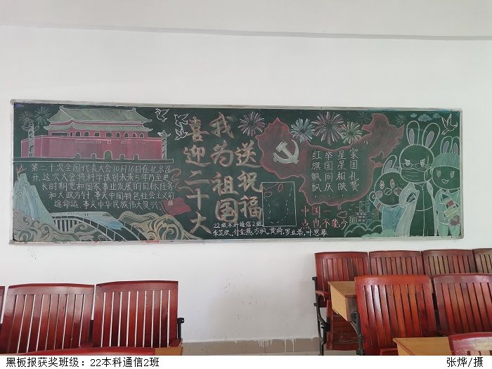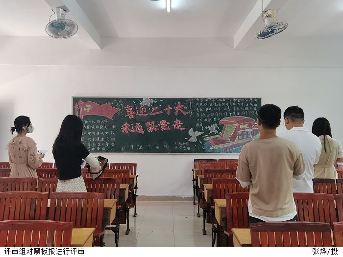 本网讯(电气与电子工程学院 叶运黎)9月26日中午,电气与电子工程学院开展“喜迎二十大,我为祖国送祝福”主题黑板报评比活动。黑板报评审组由学工部部长叶运黎及全体辅导员组成。