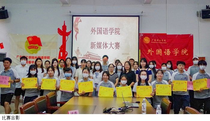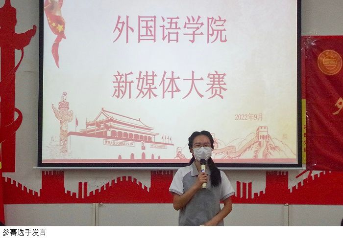 本网讯(外国语学院团委 学生会)为突出“新媒体助力乡村发展”的理念,培养学生综合应用能力,提高学生外语专业素养,引导学生以饱满的热情庆祝建团百年,以优异成绩迎接党的二十大胜利召开,9月27日下午,外国语学院于37101教室举行首届”新媒体大赛”决赛。外国语学院党总支书记吕丽红,副院长郑建蓉,副书记吕媛,教工党支部书记黄柳燕,团委、学生会书记郑苑钰,日语教研室主任杨慧担任本次大赛评委。