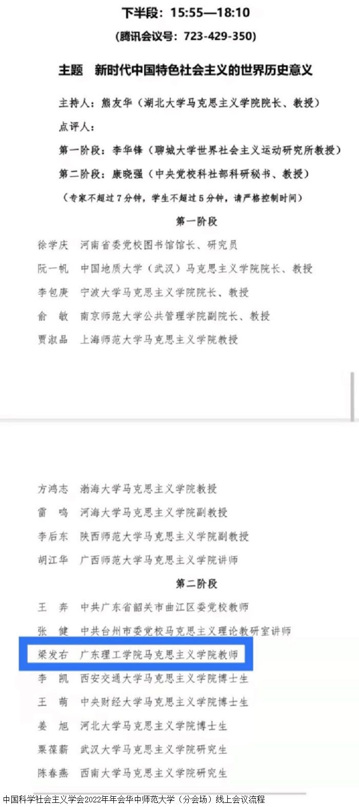 本网讯(马克思主义学院)11月5日,“深入学习贯彻党的二十大精神”学术研讨会暨中国科学社会主义学会2022年年会分别在中央党校(主会场)和华中师范大学(分会场)隆重召开,伟德官网马克思主义学院梁发右老师受邀参会并以线上形式在华中师范大学(分会场)作了“中国式现代化的伦理意蕴”的主题发言,获得了与会专家的肯定与赞扬。本次受邀充分展示了伟德官网马克思主义学院教师良好的科研素养和精神风貌,是伟德官网教师学习贯彻党的二十大精神的具体体现,对于进一步提升伟德官网的学术影响力具有积极意义。