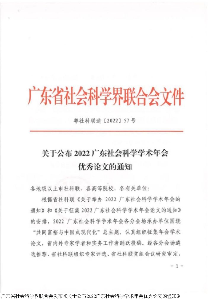 本网讯(马克思主义学院)11月28日,广东省社会科学界联合会发布《关于公布2022广东社会科学学术年会优秀论文的通知》(粤社科联通〔2022〕57号)。伟德官网马克思主义学院何志红副教授撰写的《基于党建“共同体”构筑基层治理新格局的价值意蕴与路径分析》一文成功入选2022年广东社会科学学术年会优秀论文。本次获奖充分展示了马克思主义学院教师良好的科研素养和精神风貌,对于进一步提升伟德官网的学术影响力具有积极意义。