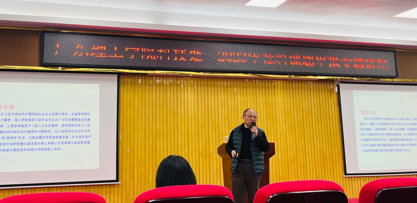 周主席在报告中对肇庆市社科规划项目申报中的基本概念、基本方法、重点问题、基本要求及2023年选题指南进行了阐释和深度分析。他强调,在肇庆市社科项目申报中,以三个围绕为原则,即围绕建设珠三角核心区西部增长极和粤港澳大湾区现代新都市肇庆市的发展路线;围绕实施产业振兴、乡村振兴、旅游振兴、社会事业振兴;围绕加快建设制造新城、协调格局、生态屏障、文旅名城、富美肇庆、平安肇庆、法治肇庆等问题进行研究;并进一步提出了申报书撰写要突出四个创新,即内容创新、观点创新、平台创新、方法创新。