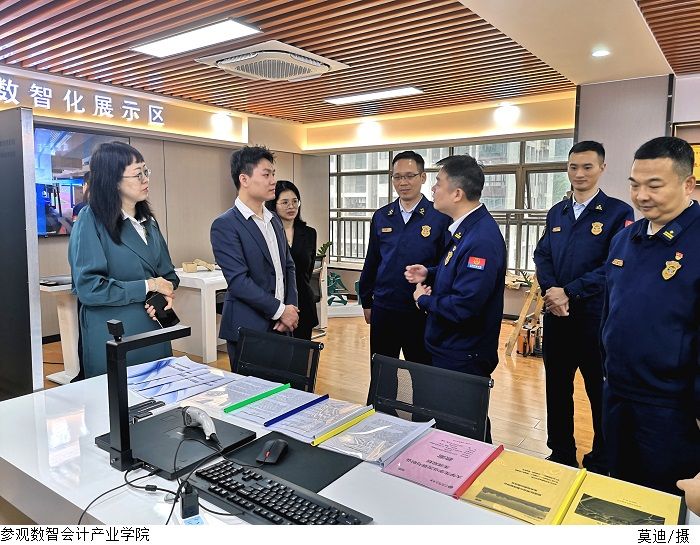 在研讨会开始前,盛洁院长带领杨志雄副支队长等一行人参观了数智会计产业学院,并结合消防救援支队提升财务综合能力的需求,就数智会计产业学院财务大数据分析等数智财务类课程进行了详细的介绍。杨志雄副支队长表示,数智会计产业学院的很多课程可以成为消防救援支队财务建设的学习课程。