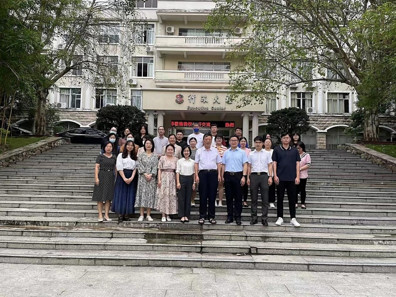 广东工商职业技术大学马克思主义学院院长李成、副院长梁伟莹、思想道德与法治教研室主任潘莲娣等领导及青年教师对我院的调研交流表示热烈欢迎。教科研指导委员会副主任陈洪超,以“民办院校青年教师的成长——基于教学与科研相互关系”为题做了专题讲座,讲座之后两校教师围绕科研、科普基地建设和教学管理等问题进行交流。会后,全体与会领导和教师在行政楼留影,并参观了广东工商职业技术大学的VR党建馆。