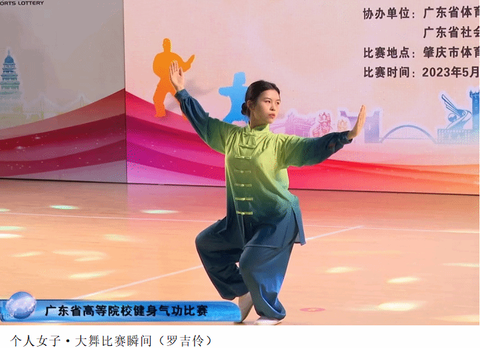 本网讯(体育系 张亚蒙)5月28日上午,因疫情影响延期至2023年举办的2022年广东省高等院校健身气功比赛在肇庆市体育中心体育馆圆满落下帷幕。伟德官网健身气功代表队在学校领导的支持下,由体育系教师张亚蒙担任教练员带领4名学生参加了个人赛4个项目、集体赛2个项目的角逐。