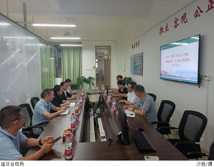 随后,双方就专业人才培养、实践课程教学管理、OBE 理念如何融入专业课堂、校企合作等方面进行深入探讨。期间,新华会计学院的傅素青老师,以《集团管控》实践课程为例,分享实践课程教学管理的成功经验和具体做法。双方积极互动,交流融洽。