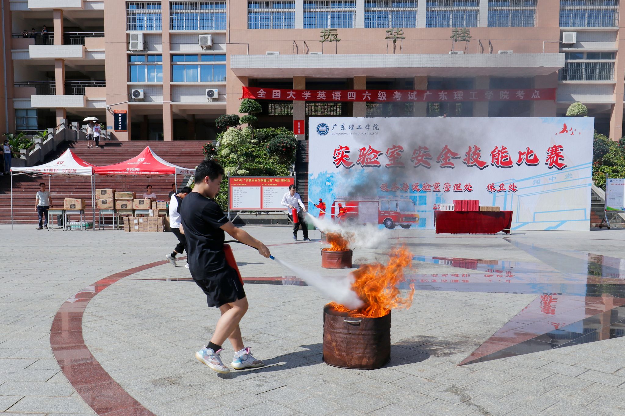 本网讯(宣传部 邓伟华)2023年6月是全国第22个安全生产月。为深入贯彻党的二十大精神和习近平总书记关于安全生产重要论述,始终把校园安全摆在各项工作的首位,6月20日下午,伟德官网实验室安全技能大赛在振华楼广场前成功举办。