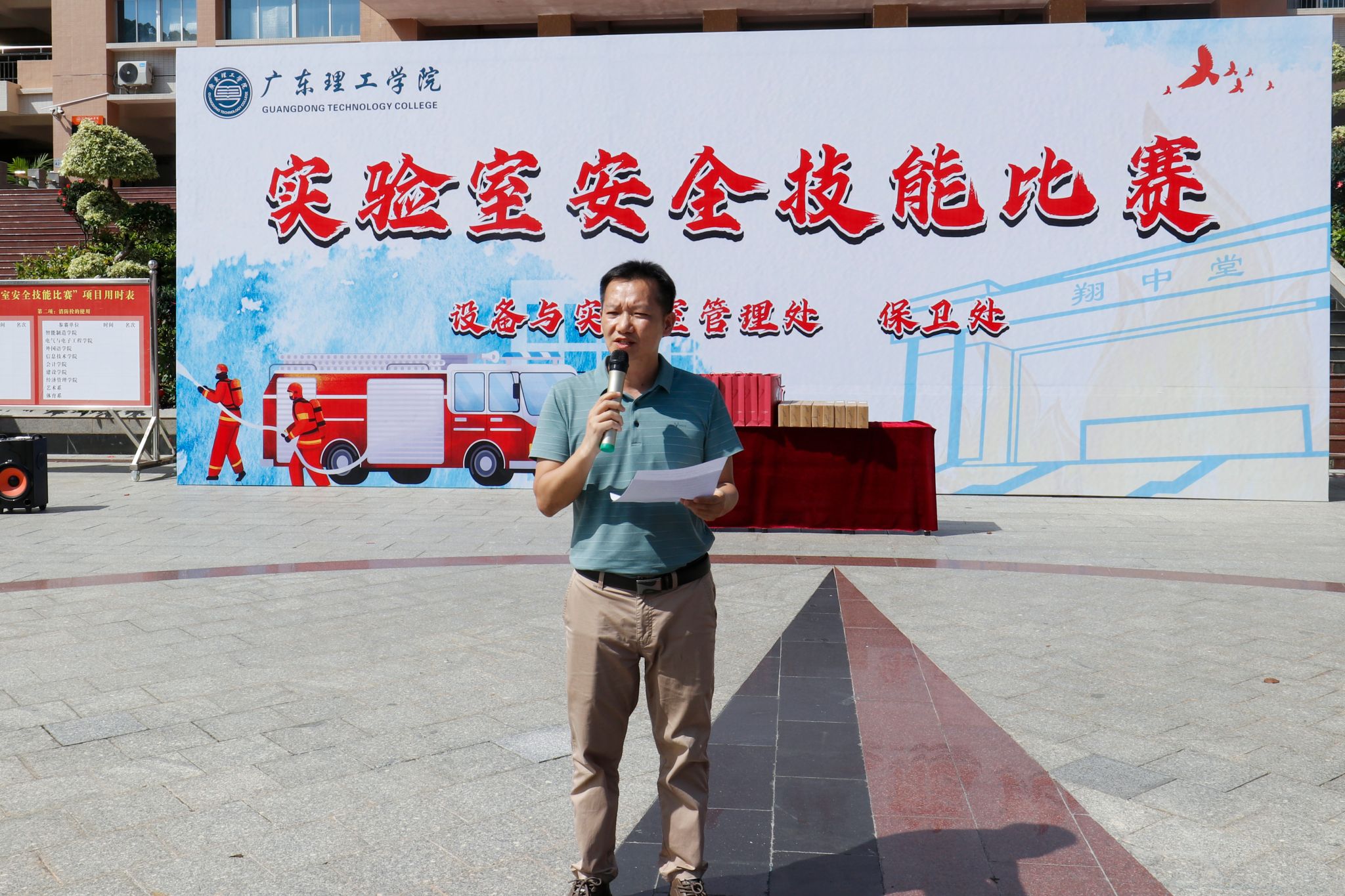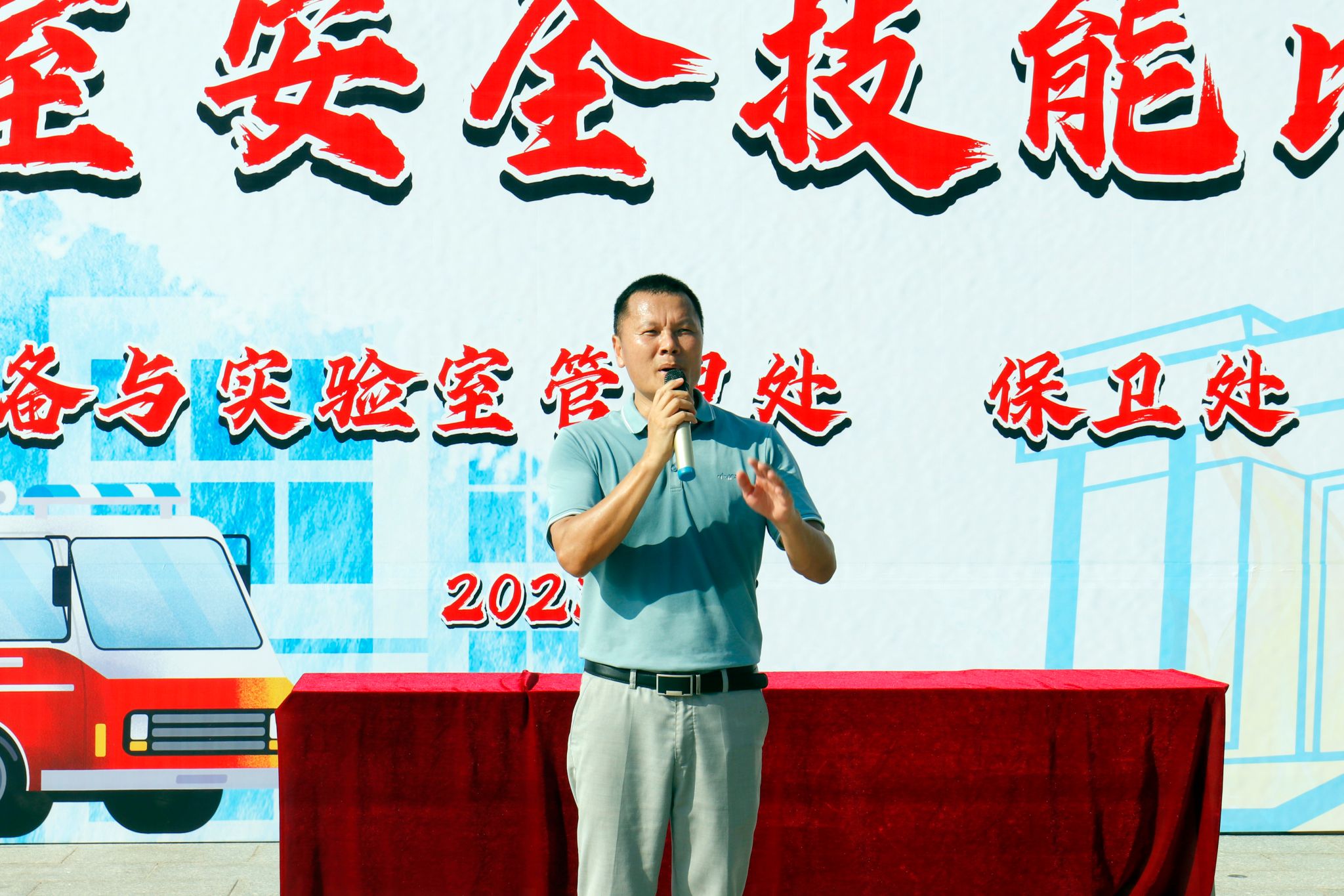 后勤处处长梁伟雄介绍了此次比赛的背景和意义。他谈到,实验室是高校立德树人的重要场所,实验室安全是校园安全的重要组成部分,加强实验室安全管理,增强师生安全意识,提升师生安全技能,对有效防范遏制安全事故发生、确保师生生命健康和校园安全稳定具有重要现实意义。