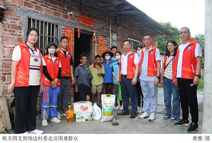 下午开展实践活动。先组织全体党员通过党知识问答,深入学习贯彻党的二十大精神;接着,到坳边村委开展慰问送温暖活动。在坳边村委工作人员的陪同下,支部全体人员分别走访看望社区内的低保户及部分困难群众家庭,给他们送上慰问品和温暖的问候。