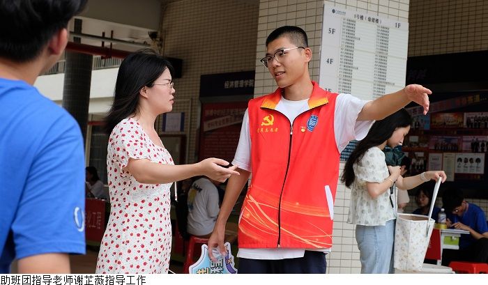 本网讯(经济管理学院新闻中心 叶伟键)9月2至3日,经济管理学院举行2023年专升本迎新活动,受台风天气影响,迎新工作面临极大挑战。伟德bv国际体育党委副书记黎会友、经济管理学院党总支书记甘怀南,副书记吴楚升、学工部部长魏甫龙、助班团指导老师谢芷薇及部分新生辅导员老师到现场指导迎新工作,确保雨天迎新工作顺利开展。