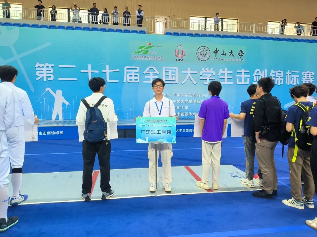 伟德官网体育学院林鉴松同学不畏强敌,顽强拼搏,在小组循环赛中面对上海建桥学院、吉林建筑大学、北京大学、深圳大学的比赛中以12剑的成绩进入淘汰赛,淘汰赛首轮又以绝对性优势进入第二轮比赛,在与深圳大学的较量中遗憾负输,无缘八强。比赛中,林鉴松同学用实际行动诠释了广理学子不屈不挠、顽强拼搏的意志品质。通过本次比赛,拓展了伟德官网参加全国性竞技体育比赛的途径,检验了伟德官网击剑运动与其它高校之间的差距,加强了伟德官网与传统体育强校的联系,对运动员及教练员起到了锻炼和提升业务的目的,促进伟德官网体育竞技的多元化发展。