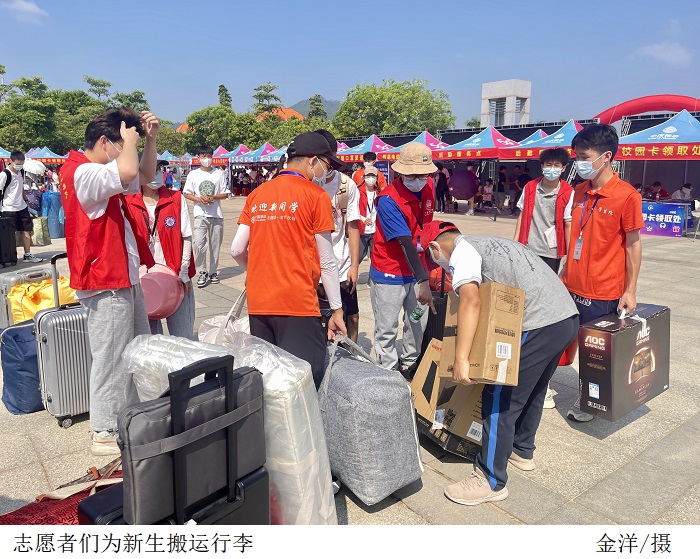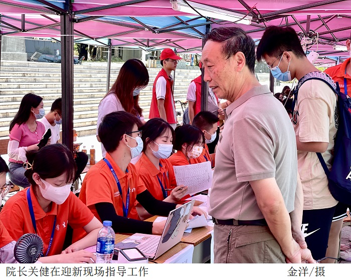 报到期间,关健对迎新现场热情洋溢、细致周到的工作人员给予肯定,并勉励大家再接再厉、圆满完成学校迎新工作;陈文华关注新生的报道情况、行李搬运及报道后的管理问题;陈强现场慰问迎新工作人员,叮嘱他们在工作的同时要注意防暑,强调要为志愿者提供全方位后勤保障。