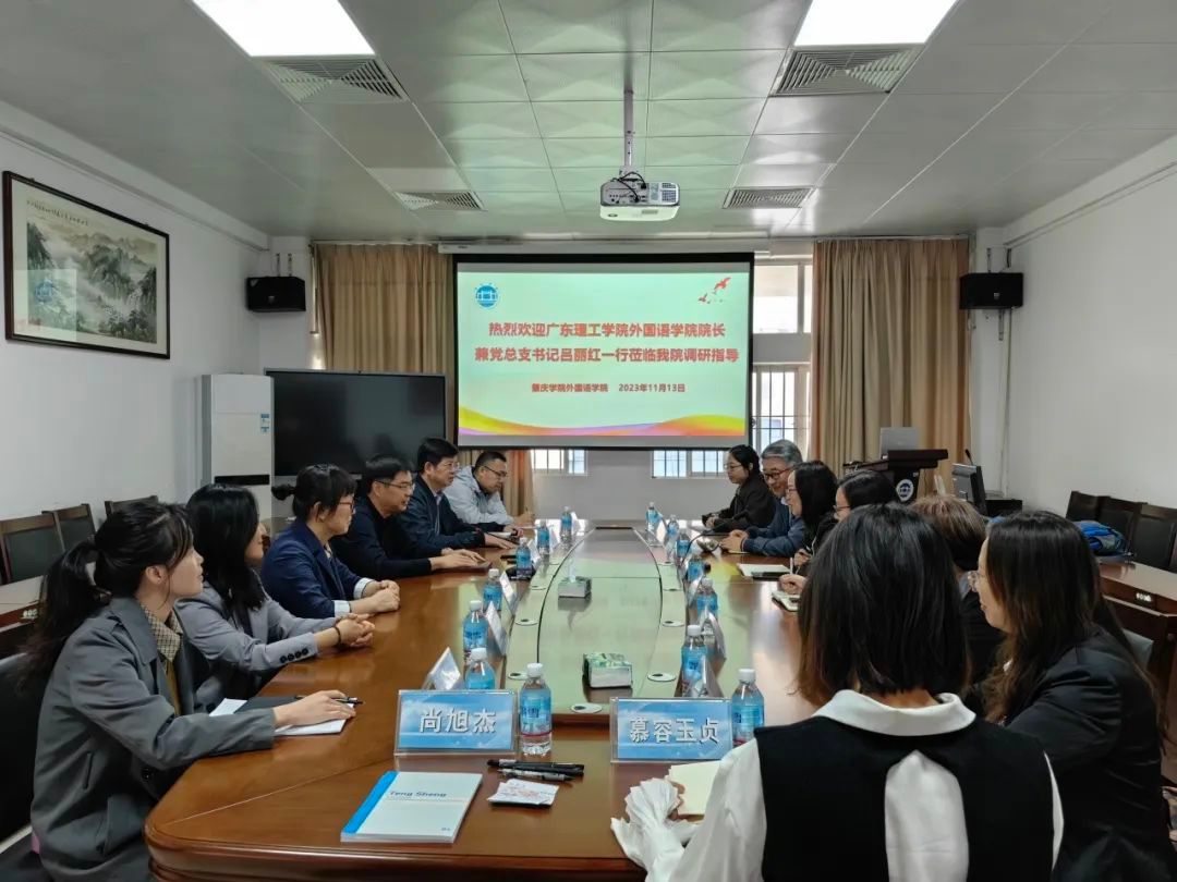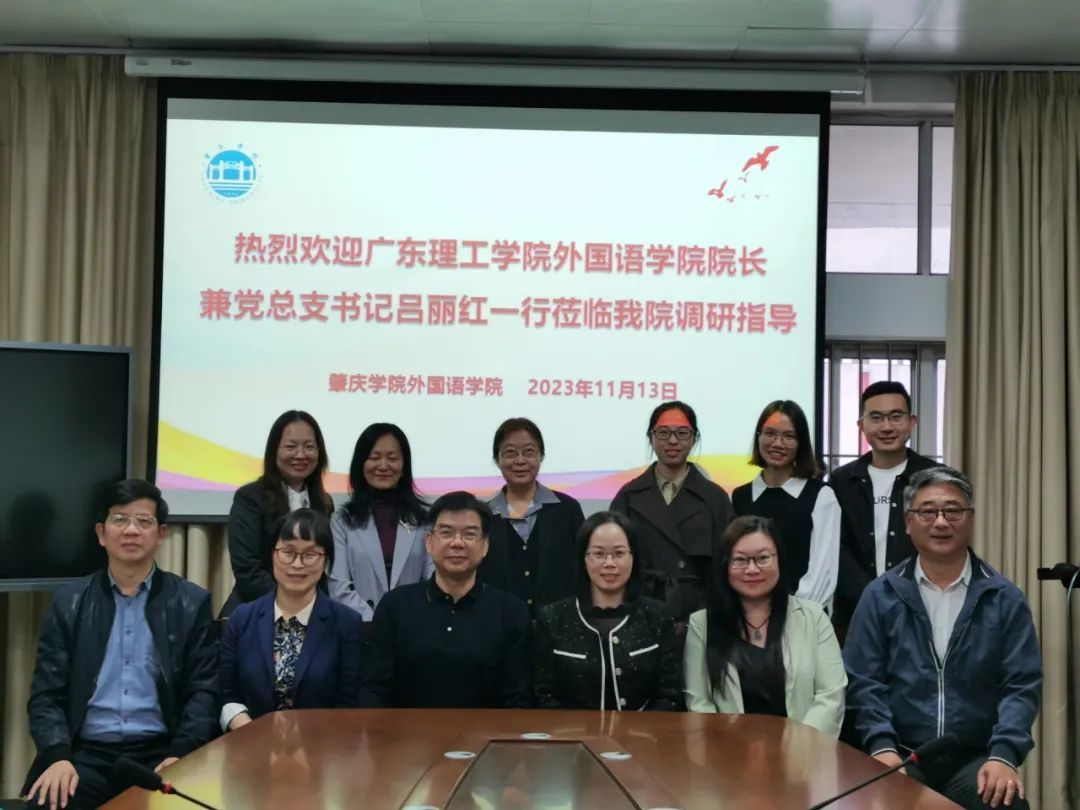 本网讯(外国语学院融媒体中心)为深入学习学科专业建设、师资队伍建设、党建业务建设、实验室建设和课程资源建设等方面的经验,加强高校间的交流与合作,11月13日,伟德官网外国语学院院长兼党总支书记吕丽红、副院长黄庆斌、郭涛教授、马宁慈副教授、杨慧副教授、商英教研室主任黄柳燕、慕容玉贞、学生党支部书记尚旭杰赴肇庆学院外国语学院进行交流学习。肇庆学院外国语学院党委书记吕伟荣、副院长童淑华、副书记卢咏、关鑫教授、李琨老师、李倩文老师参加此次交流会。