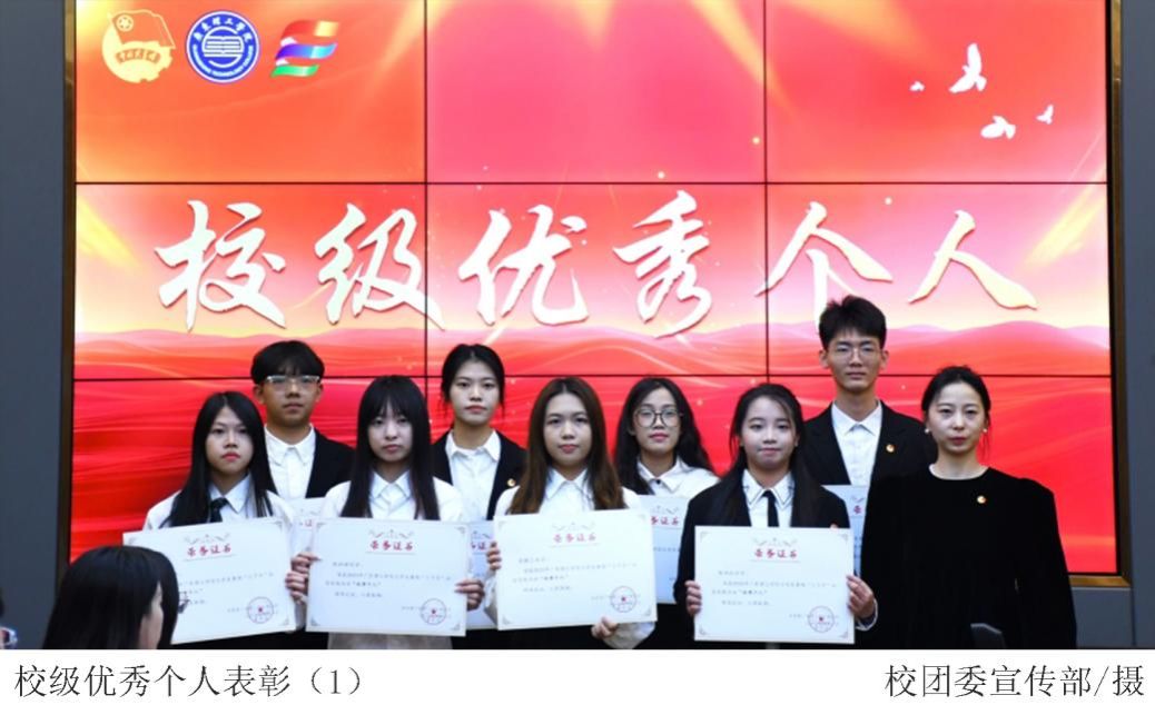 省级优秀个人外国语学院党总支副书记吕媛和校级优秀个人卢家儿同学作代表发言,她们表示,通过“三下乡”活动,深刻体会到青年力量对建设乡村,服务基层的意义重大,也更进一步明确了青年人的责任与使命。并向大家分享了自己实践队下乡经验,提出教育不只局限在课堂上,更需要走出校园、走进乡村,用自身行动去助力乡村的发展与振兴,鼓励在场的老师与同学们积极融入基层,了解基层,共同书写乡村振兴的新华章!