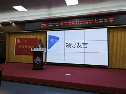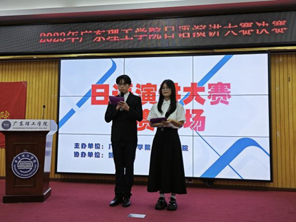 日语教研室主任李敏上台致辞,她表示,日语演讲大赛不仅仅是一次语言技能的竞逐,更是一次跨越国界的文化交流。希望在这个舞台上,每一位参赛选手都能尽情展现自己的才华,相互学习、相互启发,共同在语言的海洋中探索、成长。祝愿所有参赛选手取得优异的成绩!感谢大家的出席与支持!