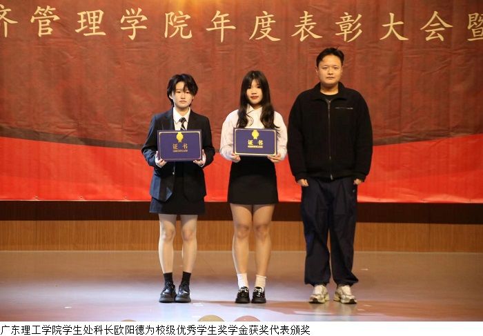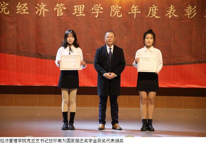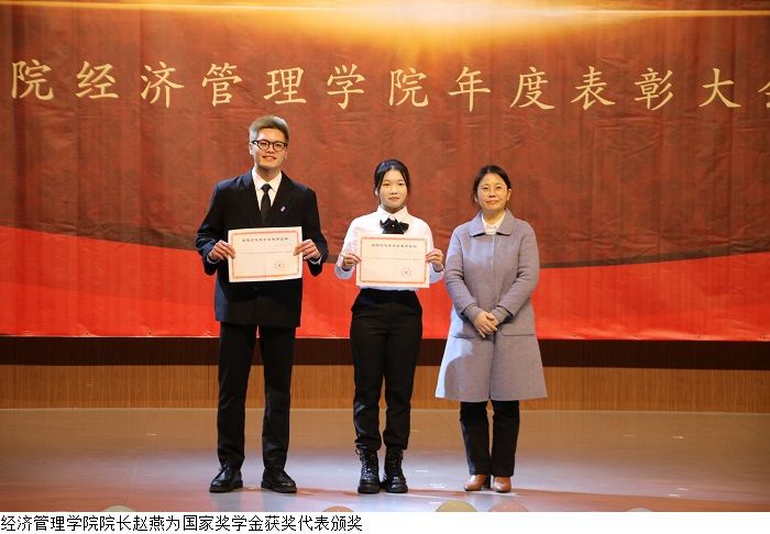 大会伊始,甘怀南致辞,2023年是收获的一年也是不平凡的一年,这一年经济管理学院举办多次活动,不仅丰富了学生校园文化生活,并且推动了学校文艺活动的蓬勃发展。新的一年里,他希望同学们不断进取,各组织学生干部在新一年的工作中不断提高自己的工作能力,牢记使命,带领经济管理学院继续走向新辉煌。随后,在荣誉颁奖环节,赵燕为国家奖学金获奖代表颁奖、甘怀南为国家励志奖学金获奖代表颁奖、欧阳德为校级优秀学生奖学金获奖代表颁奖、经济管理学院各组织指导老师为经济管理学院各组织代表颁奖。