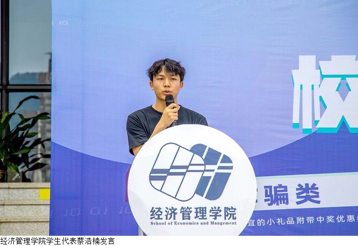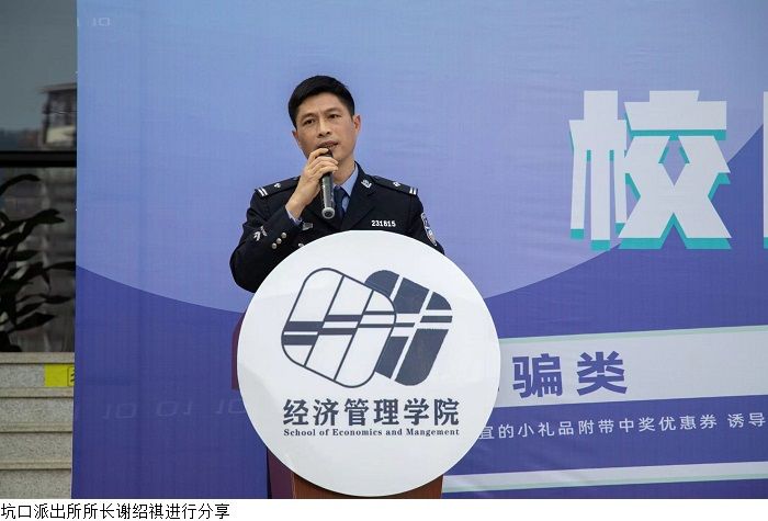 甘怀南在致辞中指出,网络发展导致诈骗手段不断翻新,他希望通过本次活动,可以提高同学们对网络诈骗的认识度,提高自我保护能力,共同营造安全的网络氛围。随后,魏甫龙老师给出了三点预防网络诈骗的建议:同学们不要轻信来历不明的信息,要稳固自己的心理防线,要提高自身的防范意识。侯小孩老师从刷单赚钱,网上借银行卡洗钱等方面分析,告诫同学们一定要提高警惕,保护好个人财产。谢所长通过讲述实际案例,剖析诈骗的常见套路,以此来提高同学们对电信诈骗的敏感度。他号召同学们下载注册“国家反诈中心APP“,提高自我保护能力。最后,学生代表蔡浩楠分享自己的感悟。他觉得本次反诈宣讲活动,能够有效帮助全院师生避免遭受诈骗损失,共同营造安全有序的校园环境。