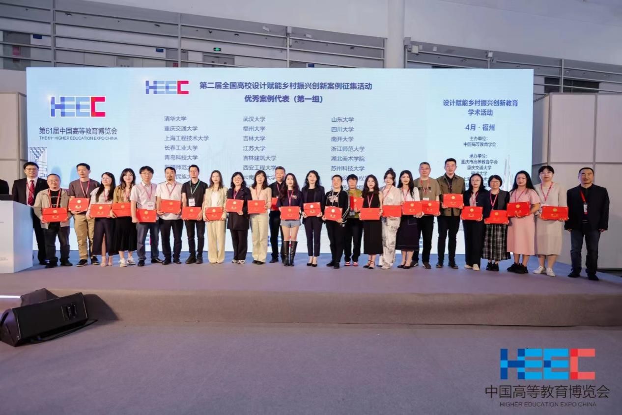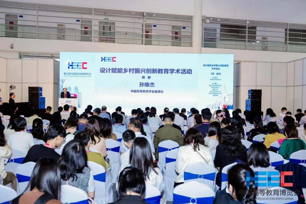 本网讯(艺术设计学院)4月15日,由中国高等教育学会主办,设计赋能乡村振兴创新教育学术活动在福州海峡会展中心成功举办,该学术活动是4月15-17日在福州举办的第61届中国高等教育博览会的重要组成部分。学术活动以“赋能乡村振兴 共富美丽中国”为主题,旨在全面贯彻党的二十大精神,发挥高校“立德树人”根本任务,引导师生奋力谱写乡村振兴新篇章。来自高等院校、行业学会/协会、企业等领域的近300名专家、学者参加了活动。中国高等教育学会监事长孙维杰,中共重庆市教育工作委员会书记、重庆市教育委员会主任刘宴兵出席活动并致辞。2023第二届“全国高校设计赋能乡村振兴创新案例”征集活动由未来设计师大赛组委会和民政部直管智惠乡村志愿服务中心联合举办,2023年12月18日开始,2023年12月31日截止,共收到学校自愿申报的512个案例,经过多轮评审,于2024年4月2日公布结果,其中的150个案例入选。