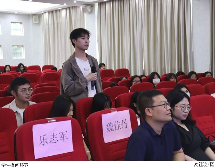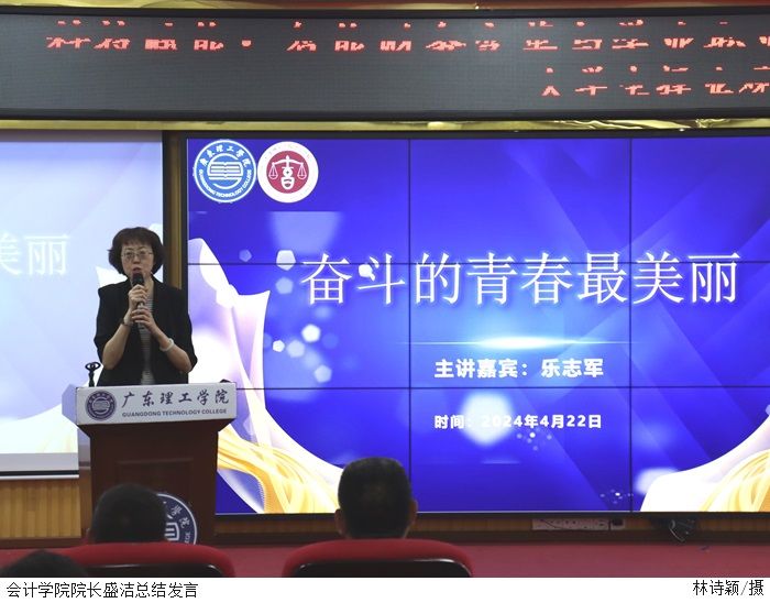 讲座内容从金蝶集团简介、科技自信、新技术推动智能财务发展、学业与职业发展四个方面开讲。乐志军先生围绕“奋斗青春最美丽”这个主题,从我国的工业软件、基础设施建设、造船技术、半导体技术、量子计算等领域出发,强调我们应当保持科技自信,树立民族自豪感;然后,介绍了大数据、人工智能、6G技术、云计算、物联网、区块链等新技术对财务领域的影响,概述了智能财务发展的趋势,总结了数字经济背景下智能财务人才的素质要求;最后,乐志军先生为本科生在简历制作、面试技巧、为人处世等方面,提供了很多实用的建议和指导。讲座尾声,学生与嘉宾之间进行了亲切互动。乐志军先生的精彩回答赢得了同学们的阵阵掌声。