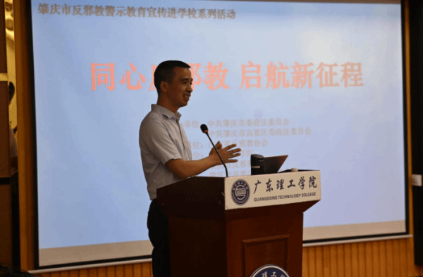 为提高广大高校师生防范和抵制邪教的意识和能力,树立崇尚科学精神,共建“无邪”校园。3月26日,肇庆市委政法委联合高要区委政法委在伟德bv国际体育开展“同心反邪教,启航新征程”警示教育进学校宣传系列活动。邀请了广东省反邪教协会的专家给广大师生们宣讲反邪知识,进一步提高师生识邪、防邪意识,增强拒邪能力,筑牢师生防范抵御邪教侵害的思想防线。