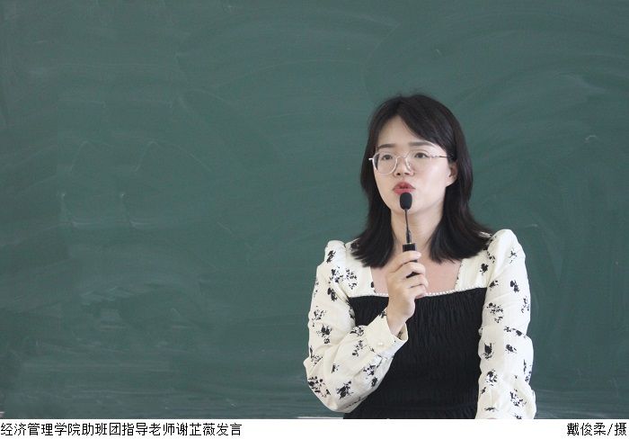 谢芷薇进行考研动员。她从学业发展与职业规划两方面指出考研升学的重要性,希望同学们可以坚定信心、认真备考。