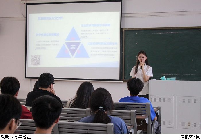 杨晓云分享了自身的考研经验。她从院校选择、备考规划、心态调整等方面进行细致讲解。在自由交流环节,师兄师姐们分享了他们的亲身经历,为同学们提供了宝贵的时间管理和学习技巧等方面的建议。