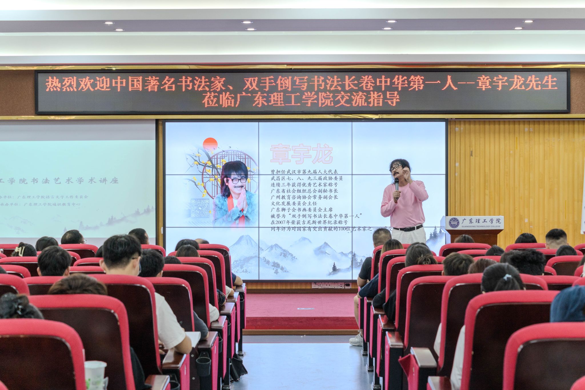 章宇龙先生首先从学校、学习、学问三者的联系和区别入手,强调问的重要性,由此强调反向思维对人生事业工作的重要意义。章先生分享了自己对书法的见解和感悟。他强调,书法不仅是书写文字,更是一种修身养性的艺术。他提到,写书法要讲究气神合一,用心用意去写,才能写出有灵魂的作品,同时指出做艺术的人应具备良好的心态。章先生现场与观众进行互动交流,并解疑释惑。他鼓励大家要勇于尝试和探索新的艺术形式,不断挑战自我,追求更高的艺术境界。