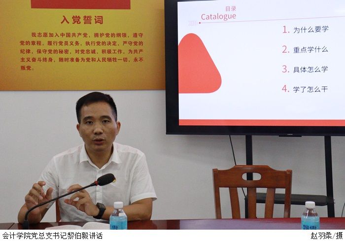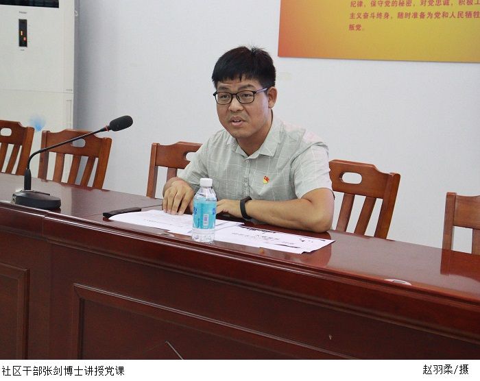 在接下来的党课环节中,双方党员代表分别就党的二十届三中全会精神进行了深入解读和交流。黎伯毅书记从“为什么要学、重点学什么、具体怎么学、学了怎么干”四个方面深入阐述。他指出大学生党员要树立服务意识,深入乡村一线,了解农民的实际需求,将所学知识与乡村实际相结合,为乡村振兴贡献青春力量。他鼓励大家在实践中不断学习和成长,成为乡村振兴的中坚力量。夏岗社区驻村干部张剑博士则从基层实践出发,讲述了在农村工作中如何贯彻党的政策,推动农业现代化和农村经济发展。他强调,基层党组织是党的全部工作和战斗力的基础,必须加强组织建设,提高党员素质,确保党的政策在基层得到有效执行。