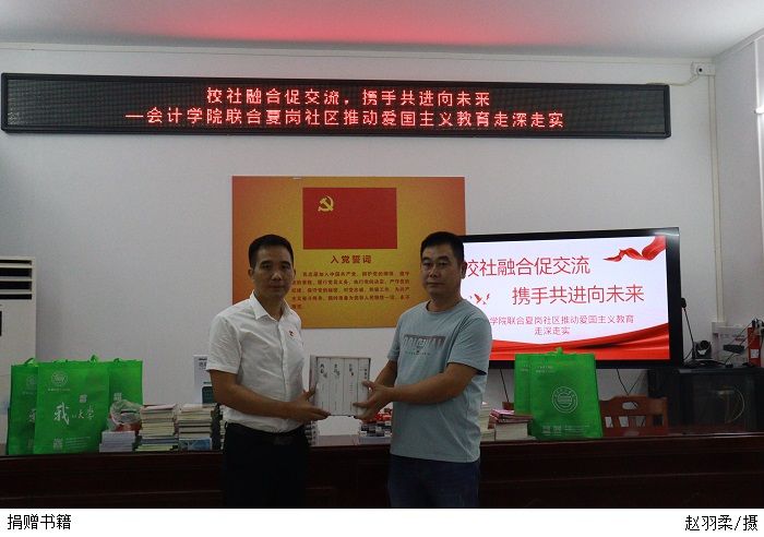 随后,会计学院向夏岗社区捐赠了一批精心挑选的书籍,涵盖了党史学习、红色经典、科学普及等多个领域。黎伯毅书记表示,这些书籍旨在为夏岗的居民提供更多的学习资源,帮助他们提升自身素质,促进农村经济的发展。夏岗社区支部书记钟景昌对这一慷慨捐赠表示衷心的感谢,并表示将充分利用这些书籍,为居民提供更多的学习机会,推动夏岗村的全面发展。
