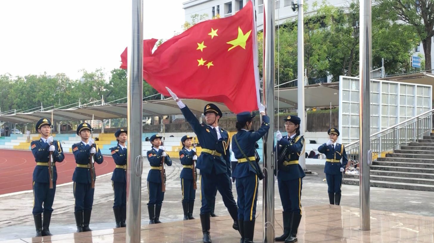 活动伊始,国旗护卫队护送五星红旗入场。伴随着《义勇军进行曲》,五星红旗冉冉升起,全体师生庄严肃立,注视国旗,高唱国歌。