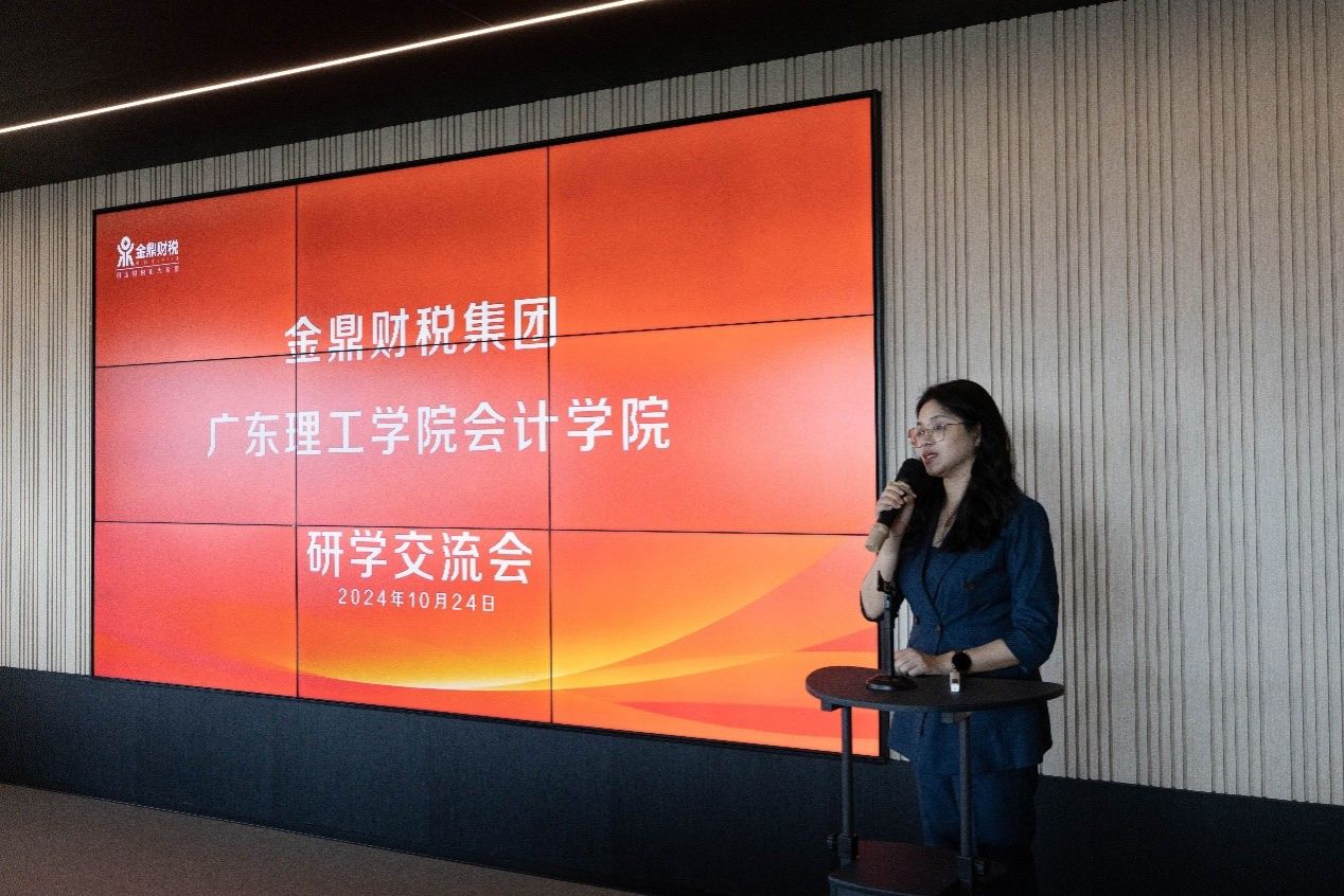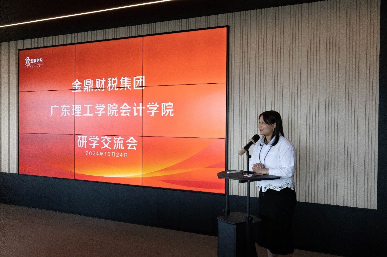 接着,会计学院副院长郑春晓鼓励学生们要倍加珍惜此次难得的研学机会,希望同学们能够在此次活动中汲取丰富的知识和经验,为未来的职业发展做好充分准备。同时,她还代表学院对佛山金鼎财税集团给予的研学机会表示衷心感谢,期待双方能够在人才培养、学术交流等方面开展更深入的合作。