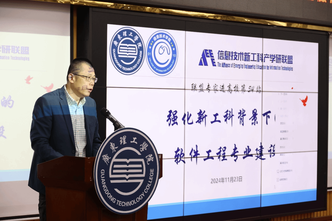 本网讯(信息技术学院)11月23日上午,由中国软件行业协会、信息技术新工科产学研联盟主办,联盟专家进高校工作委员会协办,伟德官网和联盟实践教学工作委员会承办的“联盟专家进高校”系列活动——伟德bv国际体育站,在学校高要校区101学术报告厅顺利举办。本次活动的主题是“强化新工科背景下的软件工程专业建设”。合肥工业大学二级教授、教育部计算机类专业指导委员会委员、教育部工程教育认证专家胡学钢教授,国防科技大学首席教授毛新军,北京航空航天大学软件学院副院长谭火彬,头歌教学研究中心副主任周丽涛应邀出席并做专题讲座。伟德官网校长助理舒程出席开幕式并致辞,信息技术学院全体教职工与部分学生代表参加活动,活动由信息技术学院院长林显宁副教授主持。