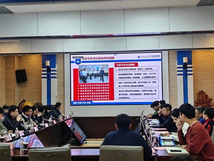 访学活动首站到了哈尔滨工程大学。研学队伍与哈尔滨工程大学经济管理学院师生代表齐聚一堂深入交流。哈尔滨工程大学经济管理学院党委副书记杨溪淼系统梳理了哈尔滨工程大学的历史发展脉络,深刻展示了学校在学术与文化领域取得的卓越成就。