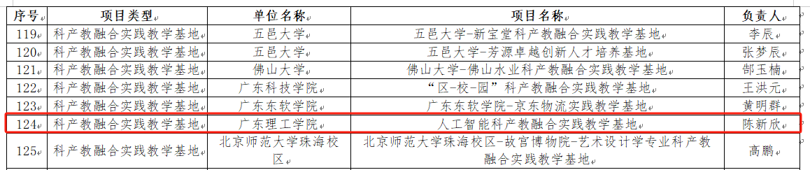 本网讯 近日,广东省教育厅公布了2024年度广东省本科高校教学质量与教学改革工程建设项目立项名单,伟德官网电气与电子工程学院副院长陈新欣副教授主持建设的“人工智能科产教融合实践教学基地”获得立项,成为伟德官网继2021年之后再次获得立项的第2个省级科产教融合实践教学基地。