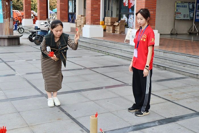 游园会活动的现场热闹非凡,红色知识竞答,创意木桩、套圈和投壶等小游戏吸引了众多学子参与。同学们通过扫码参与红色知识竞答,在现场学习与讨论红色知识的过程中提升了思维能力。在游戏环节中,工作人员细心讲解游戏规则,参与者们各显身手,积极参与到小游戏中,现场一片欢声笑语。同学们通过游戏获得印章兑换各种精美小礼品。随着兑奖环节的结束,本次校园植树节游园活动也圆满落下帷幕。