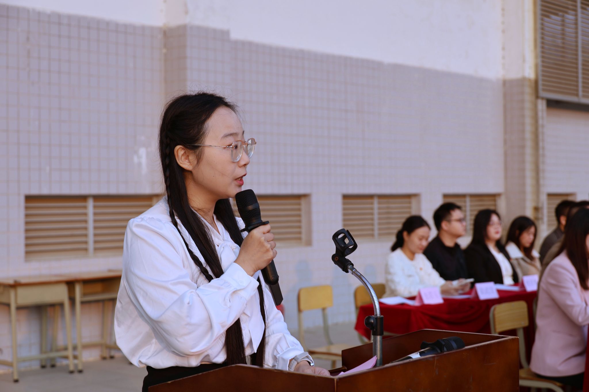 教师代表胡娇铃以哪吒“我命由我不由天”的信念激励我们:“真正的强者,是含着眼泪依然奔跑的人。”愿我们像哪吒一样,肩负责任、直面挑战,用奋斗打破命运的枷锁,成就更好的自己!以哪吒精神诠释责任担当“若命运不公,就和他斗到底!”