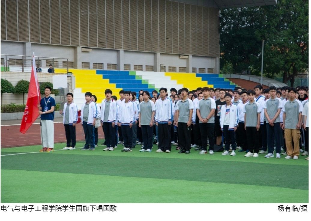 本网讯(电气与电子工程学院融媒体中心 杨捷稀)2025年3月3日7:30,电气与电子工程学院在田径场举行升旗仪式。参加本次升旗仪式的有电气与电子工程学院党总支书记陈文华、副院长陈新欣、副院长罗泽鹏、党总支副书记陈强、各班级辅导员以及学院全体在校学生。仪式由学工部部长高阳主持。