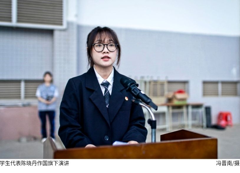 晨曦微露,操场上人头攒动,国旗护卫队身姿挺拔,如松般迈着坚毅步伐迈向升旗台,气势磅礴。激昂国歌乍起,同学们挺胸高歌,眼神炽热,五星红旗迎着曙光冉冉攀升,猎猎作响。此刻,同学们满心的赤诚皆融入对国旗的尊崇,捍卫国家荣耀,赓续民族精魂,让爱国情怀熠熠生辉。