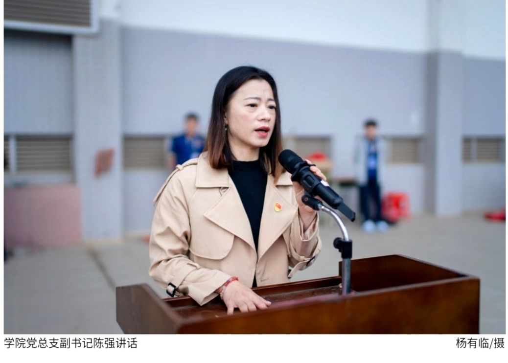 陈强在讲话中首先强调,同学们要迅速告别假期,以饱满的精神状态开启新学期。随后,她指出,在人工智能与移动互联网深度发展的背景下,青年要善用智能终端与AI工具赋能学习,抓住数字创作机遇,提升数字素养与创新能力,以应对未来挑战。接着,她通过剖析《哪吒2》中“我命由我不由天”的内涵,号召学子以哪吒为榜样,在学业和实践中攻坚克难,钻研知识,突破思维定式。此后,她从应用型人才培养的角度出发,希望同学们主动参与学术科创和社团实践,借助多元平台锻炼组织协调、团队协作等综合能力,同时积极关注行业前沿,培育跨界融合的创新思维。最后,她以“少年当有凌云志,万里长空竞风流”激励大家,在新学期锚定目标,开拓进取,书写青春华章。