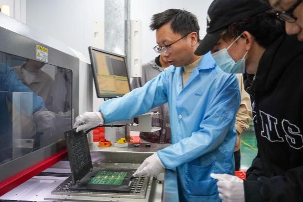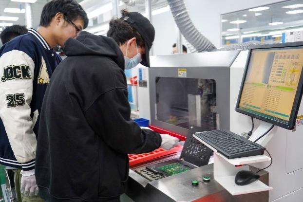 为了让学生们更直观地了解机器人的生产过程,活动还安排了参观优必选工厂的环节。在这里,学生们亲眼见证了机器人从零部件加工到整机检测的全过程,感受了科技的魅力与严谨的生产标准。在工程师的指导下,学生们还亲手操作了半自动分板机、学习了程序烧录等技能,积累了宝贵的实践经验。