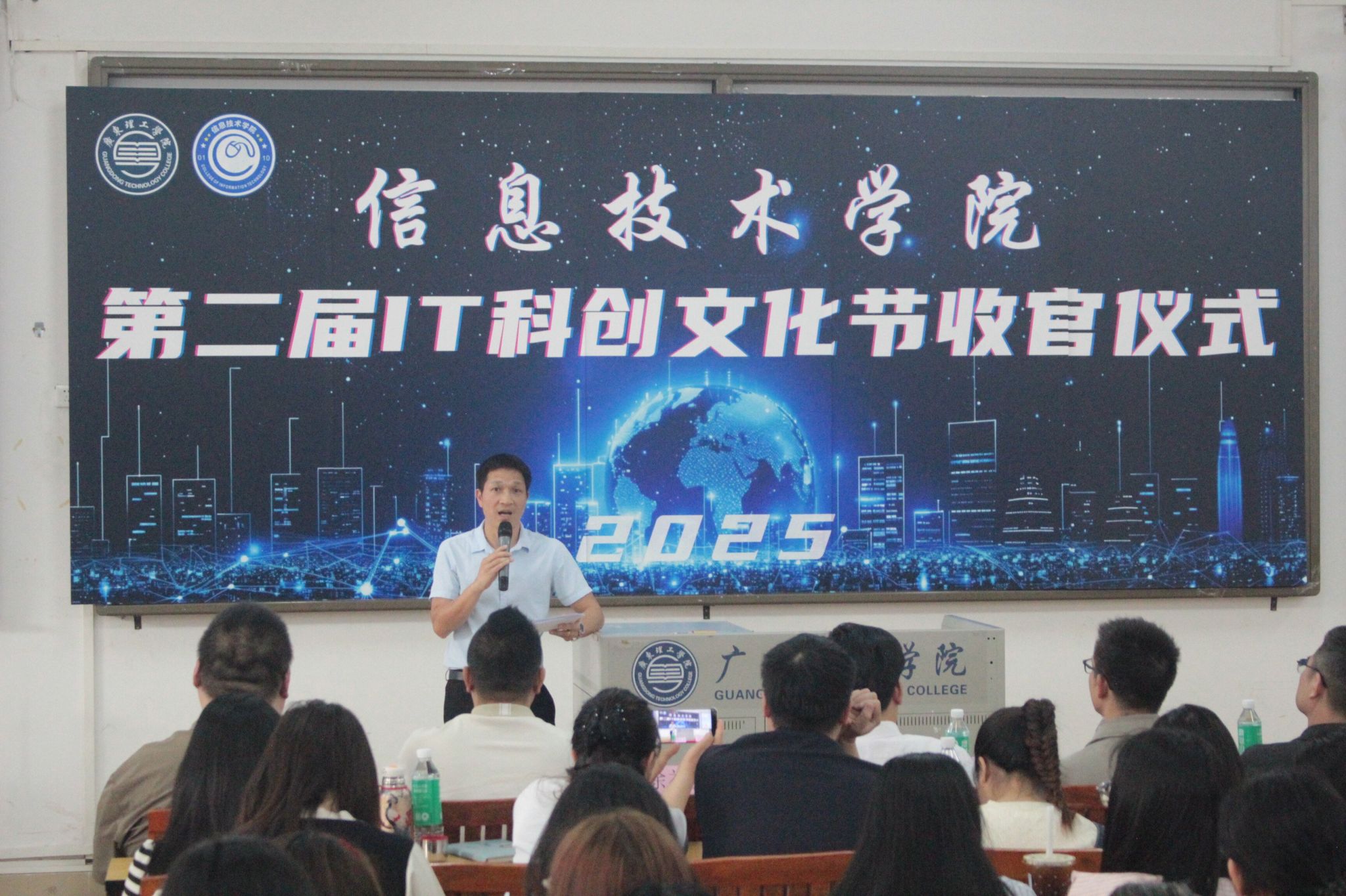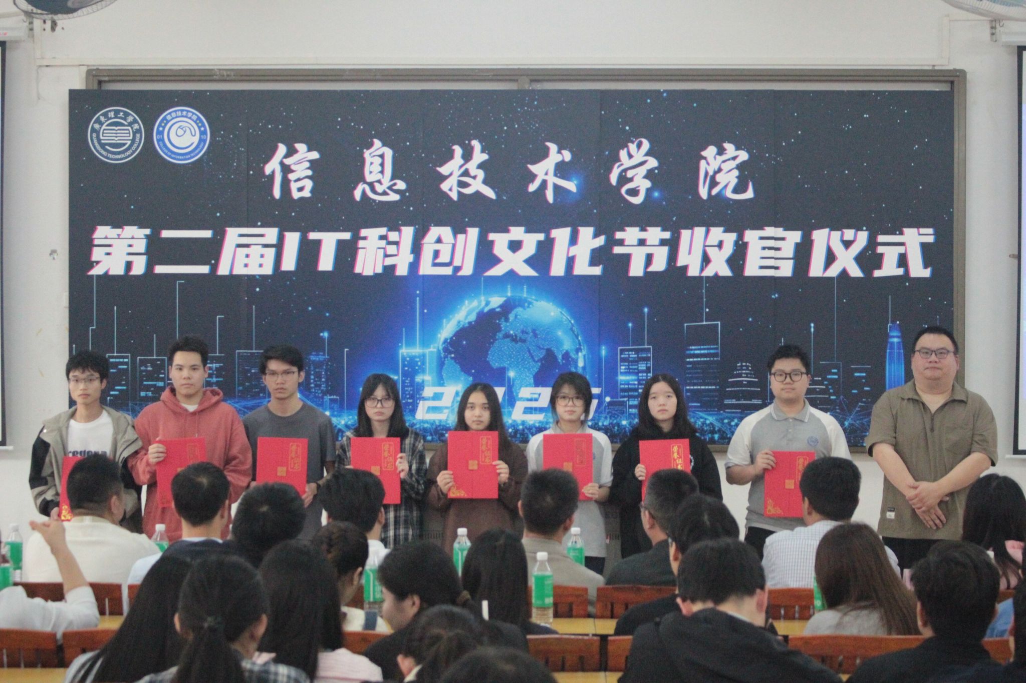 本网讯(信息技术学院 团委学生会)为了鼓励学生积极参加科技创新活动,提高学生创新精神,信息技术学院团委、学生会于2025年4月8日在42栋218举办了IT科创文化节收官仪式。